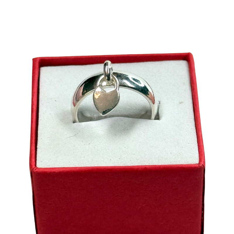 O pingente em formato de coração move-se suavemente com os gestos da mão, criando um efeito leve e feminino sem ser exagerado. Este detalhe torna o anel perfeito para quem aprecia peças minimalistas, mas com personalidade. A prata proporciona durabilidade, resistência e um brilho que se mantém elegante com cuidados simples.