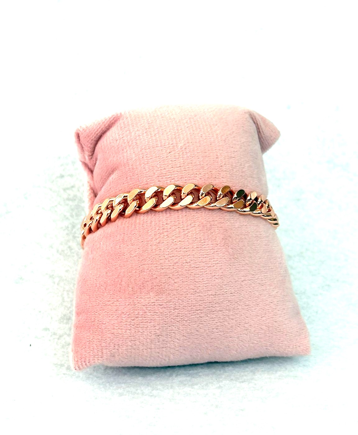 Com 19 cm, a bracelete oferece ajuste confortável e seguro, mantendo firmeza sem apertar. O seu design em malha tipo “gourmette” transmite personalidade e presença, sendo perfeita para uso diário ou como peça principal num look mais ousado. Além de durável e resistente ao desgaste, o cobre puro desenvolve com o tempo uma pátina natural apreciada pela sua autenticidade — um sinal de energia viva e metal genuíno.