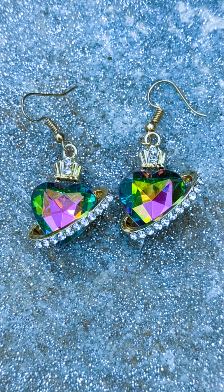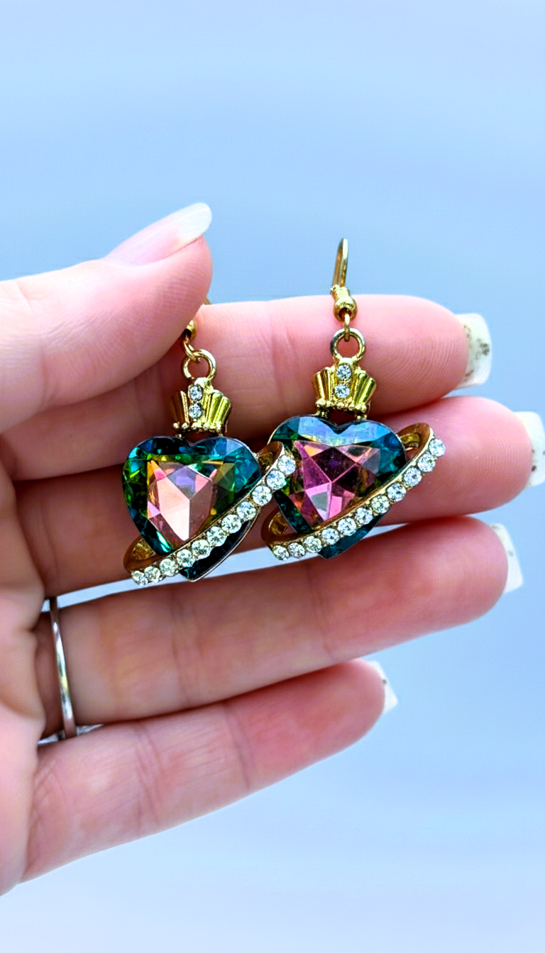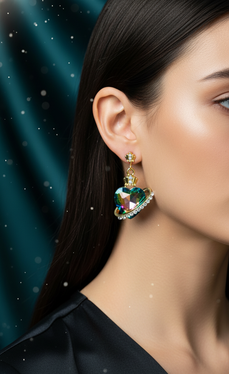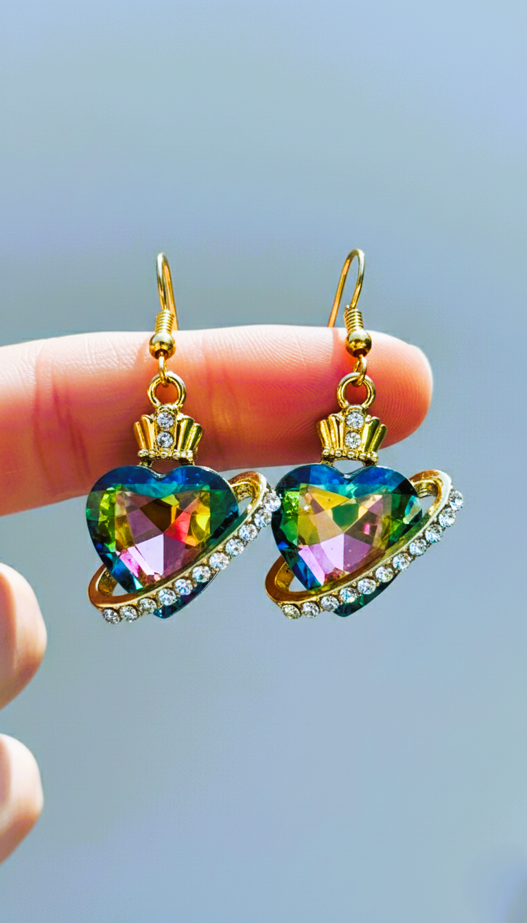 Adicione um toque de magia e alegria ao seu look! Estes Brincos de Coração Coloridos possuem um cristal multifacetado que muda de cor e um elegante detalhe de coroa. São o acessório Casual Chic perfeito para iluminar o seu dia. Brilho vibrante garantido!