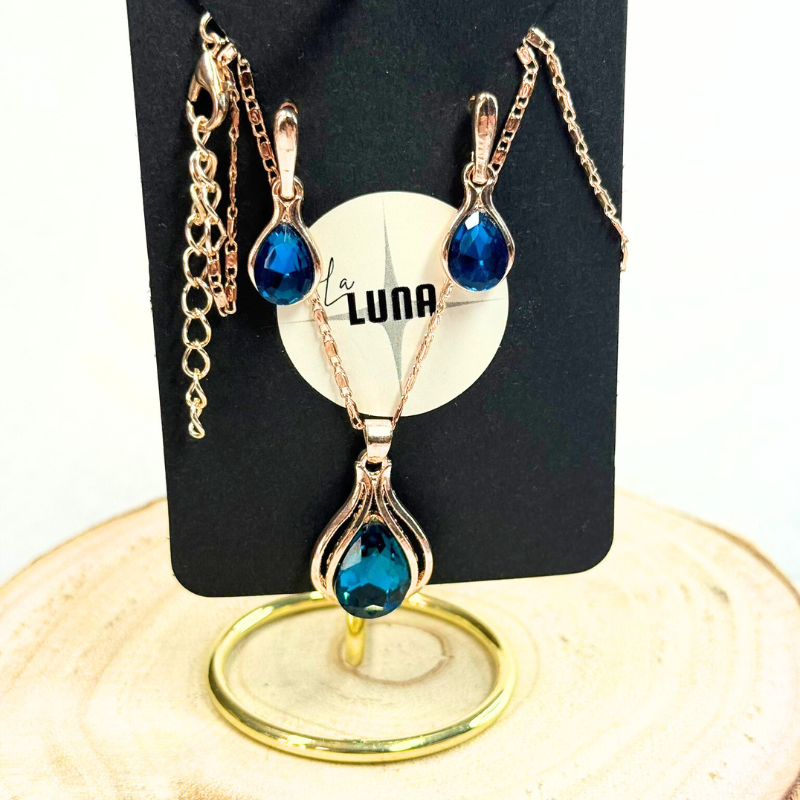 O banho dourado oferece acabamento brilhante e uniforme, valorizando ainda mais a pedra azul. Com cuidados simples, o conjunto mantém uma boa aparência ao longo do tempo. A combinação de cor, brilho e formato torna esta peça uma excelente escolha para quem procura um acessório acessível, elegante e fácil de usar.