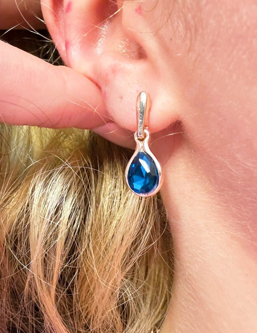 1 par de brincos dourados com pedra gota azul