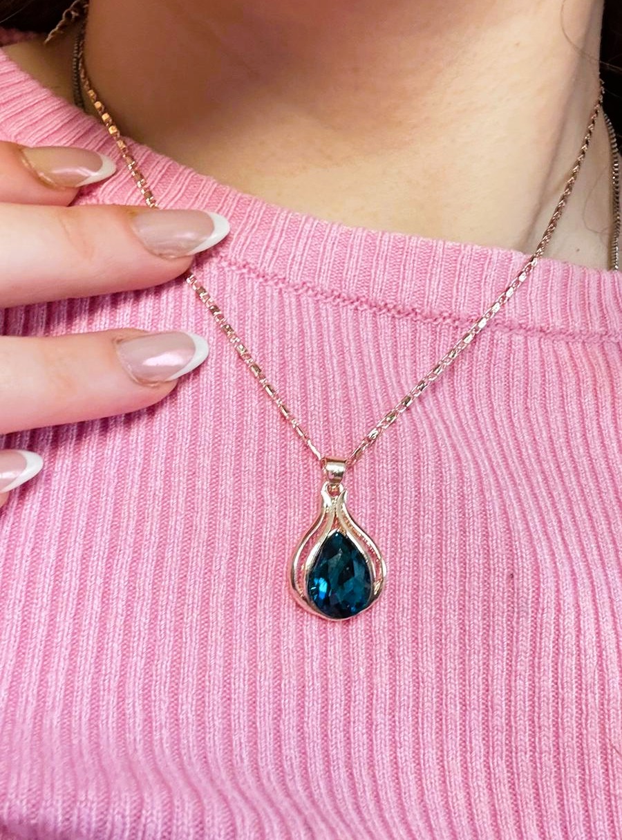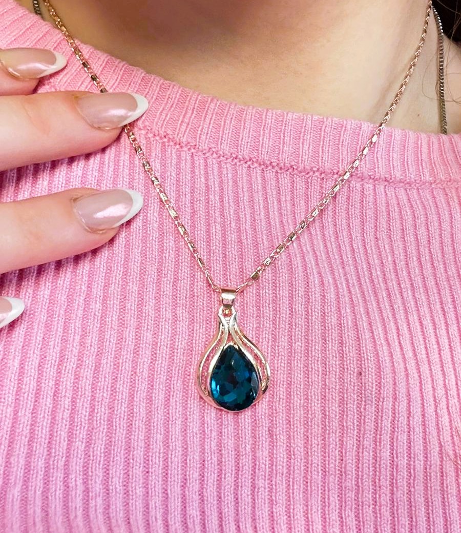 O Conjunto Gota Azul combina fio e brincos dourados com uma pedra azul marcante em formato de gota. O design moderno, com linhas suaves que envolvem a pedra central, proporciona elegância imediata e um brilho que se adapta bem a qualquer estilo. A tonalidade azul intensa destaca-se tanto em looks neutros quanto coloridos, tornando o conjunto versátil para uso diário ou ocasiões especiais.