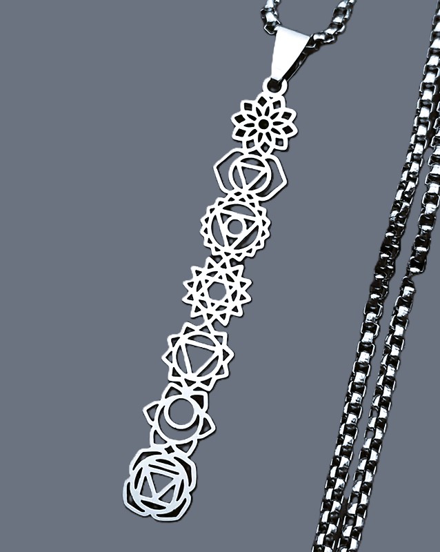 Este colar apresenta os sete símbolos dos Chakras, os principais centros de energia do corpo. Ao usar este colar, você convida a harmonização dessas energias, promovendo um profundo senso de paz e poder pessoal. Cada símbolo representa uma área vital: