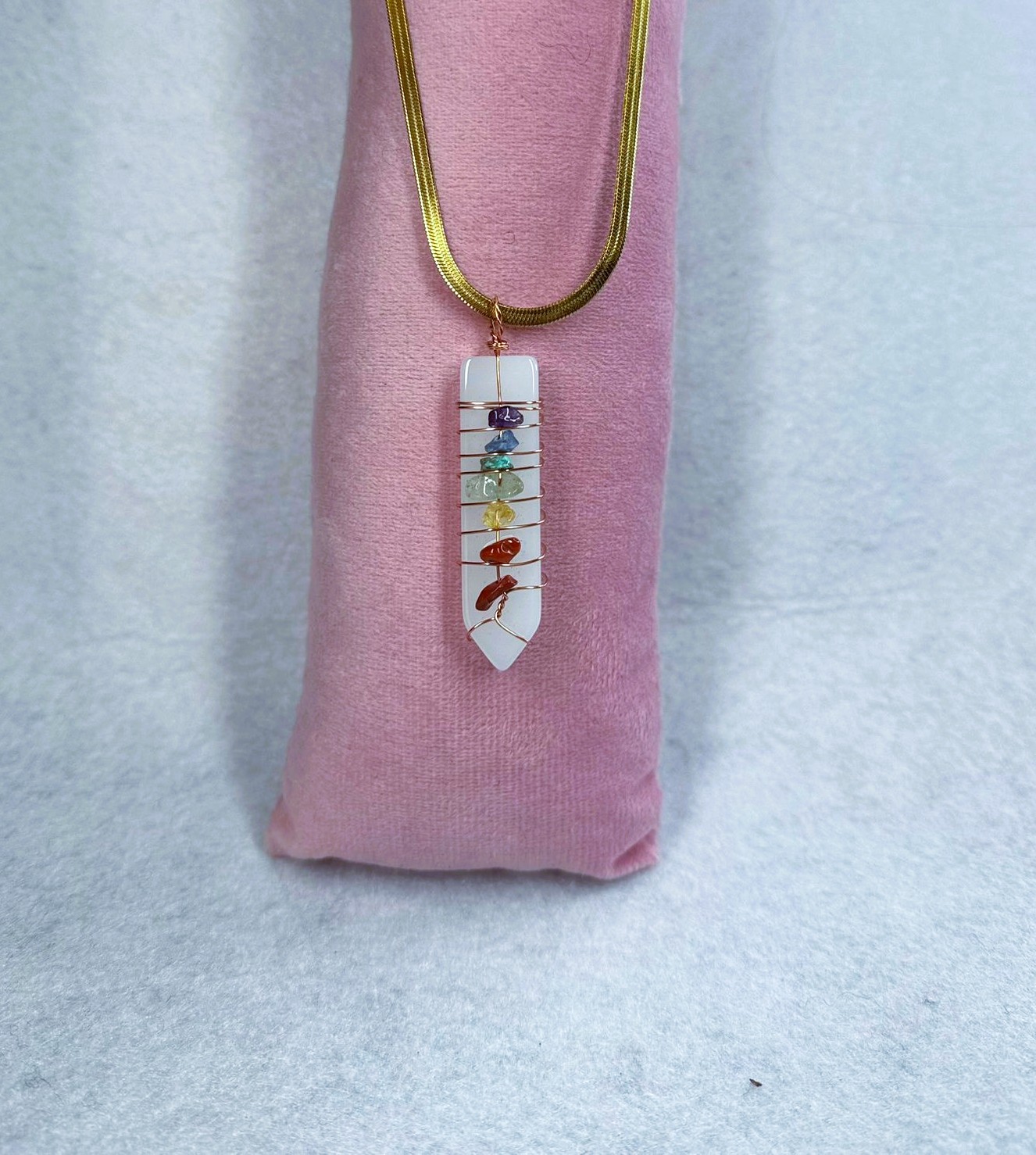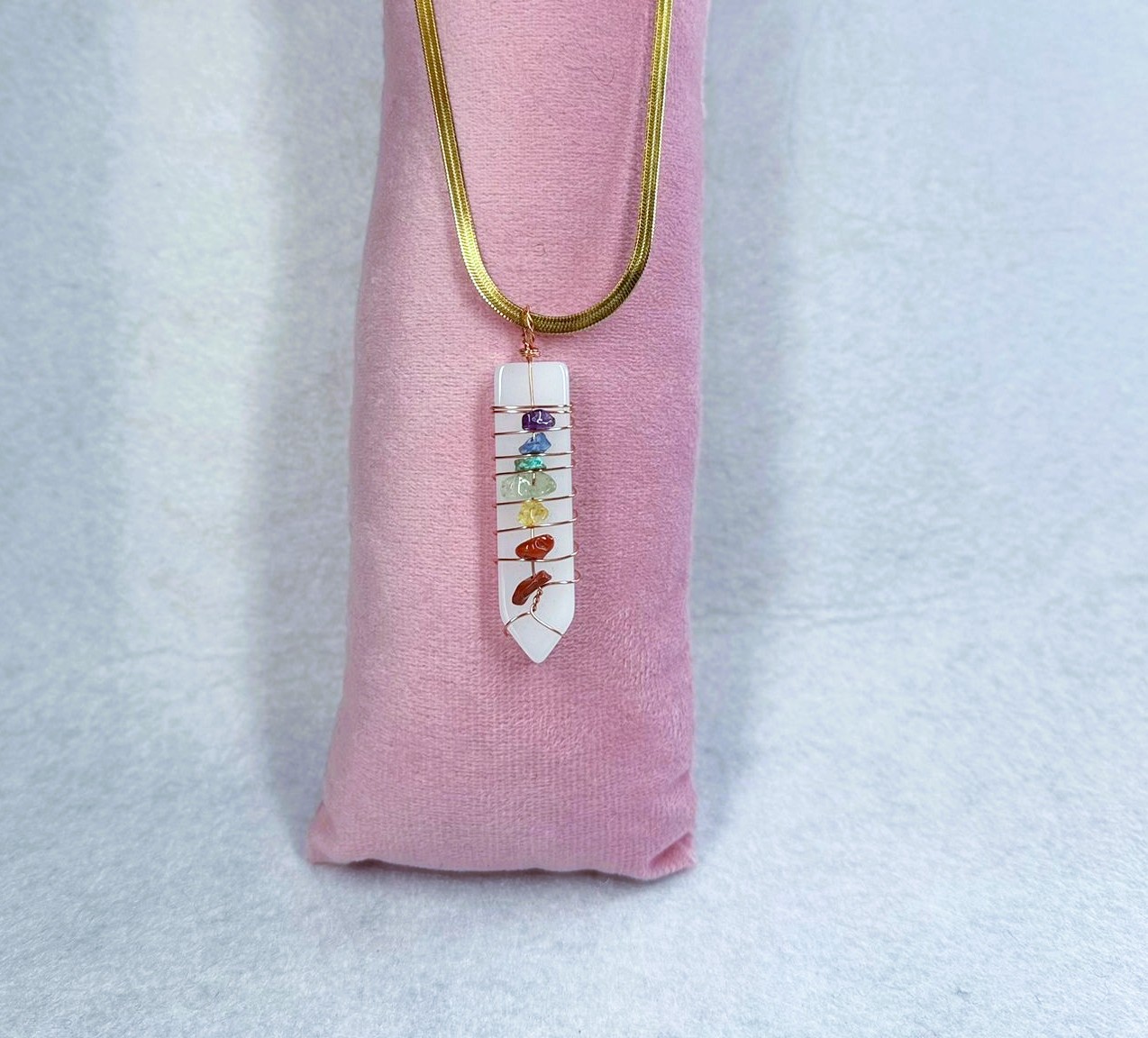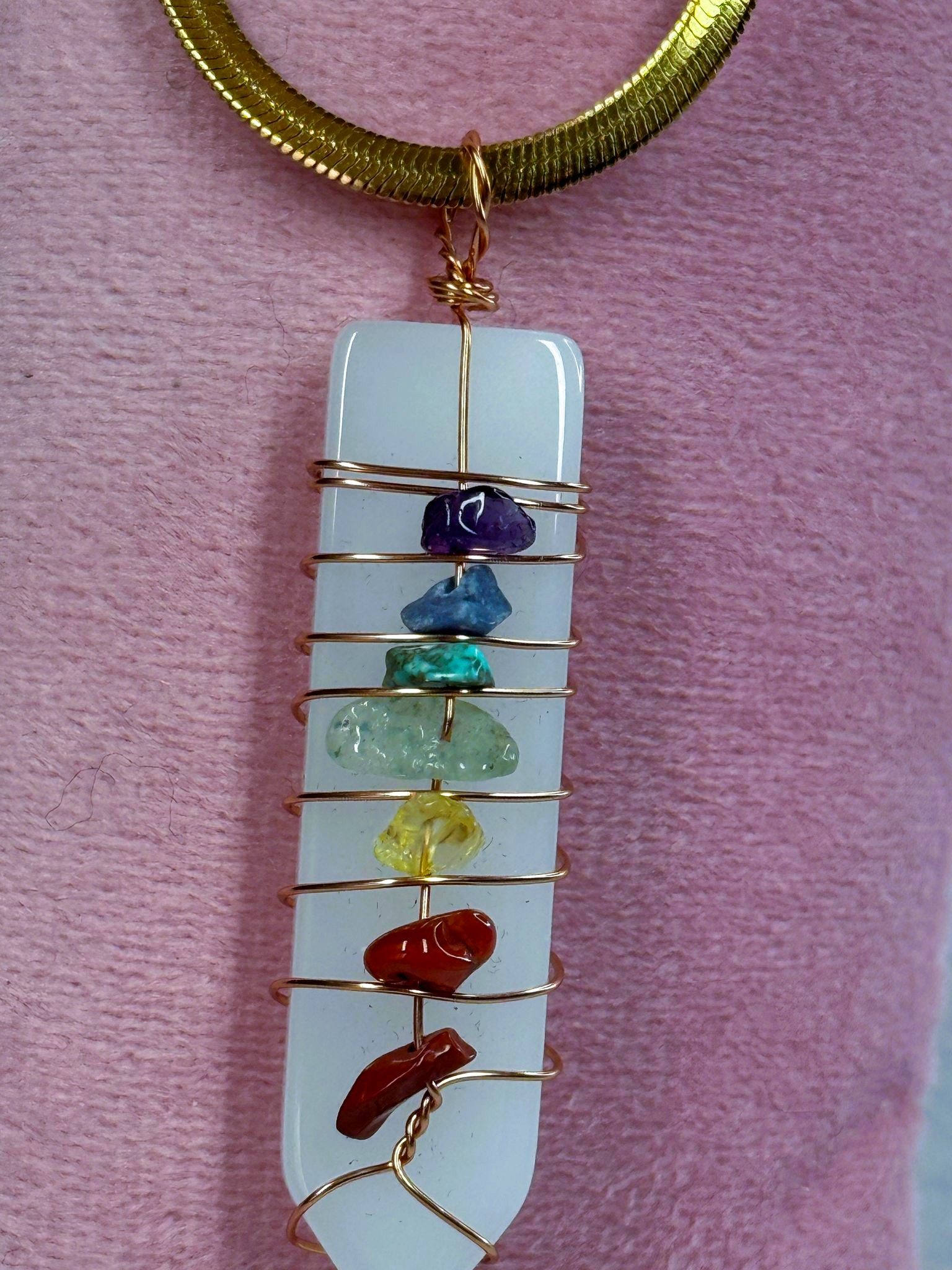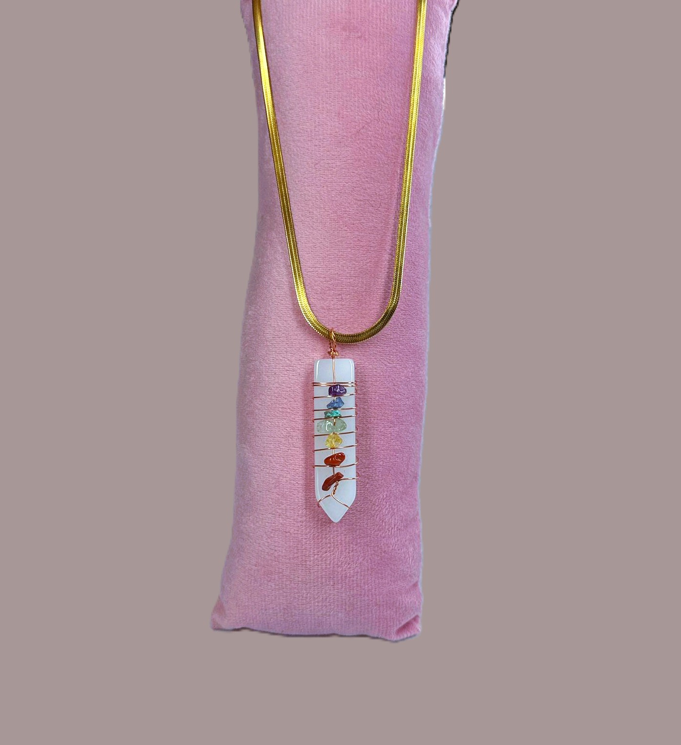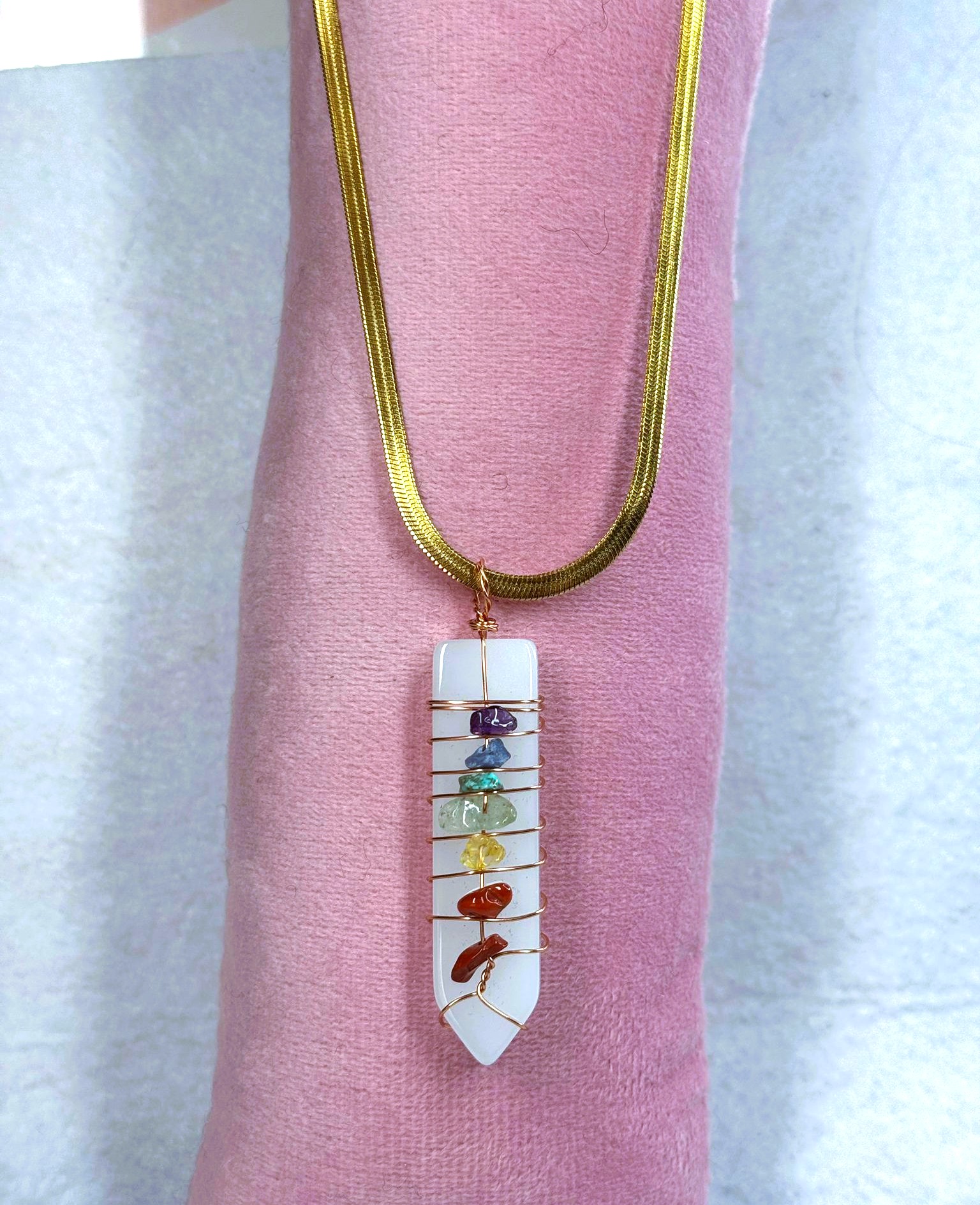 1 pendente selenita com pedras dos 7 chakras
