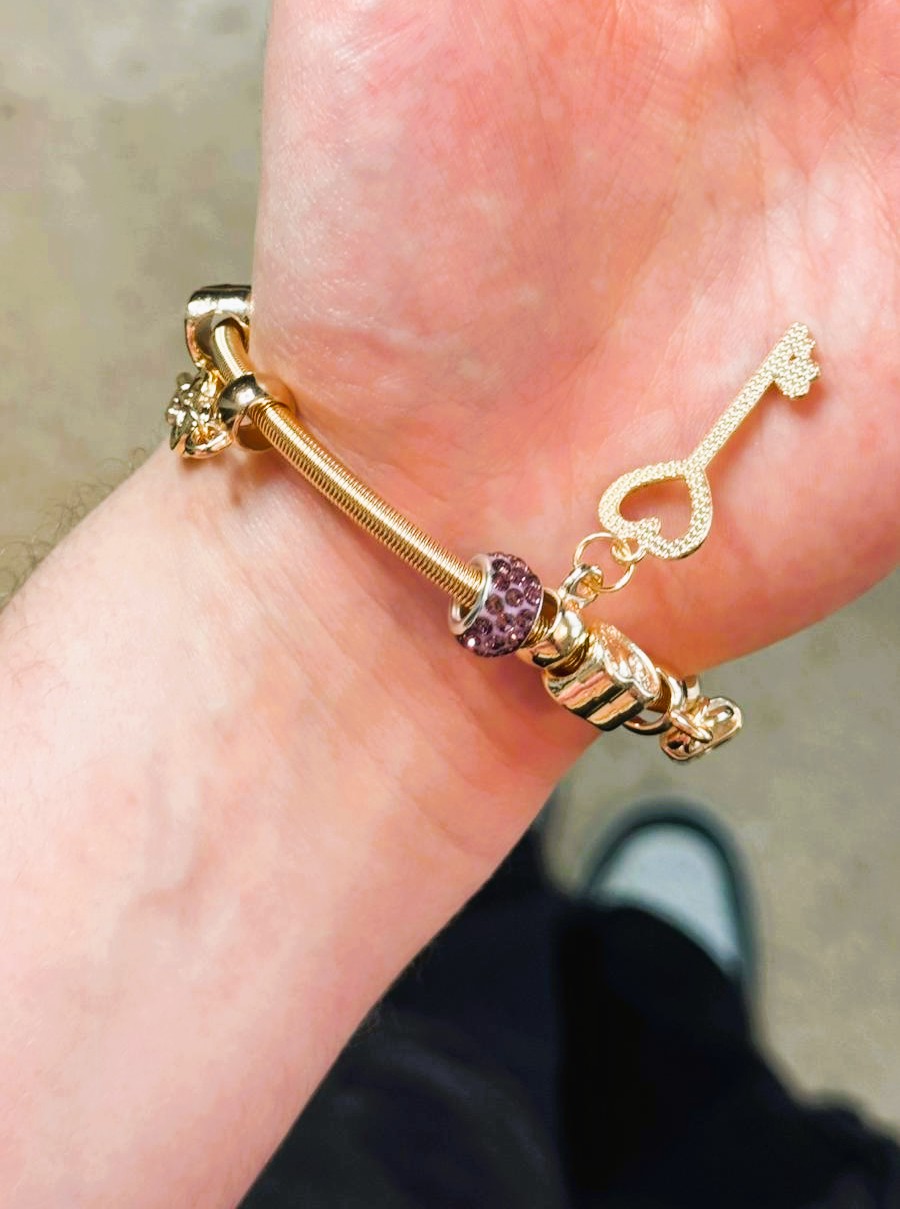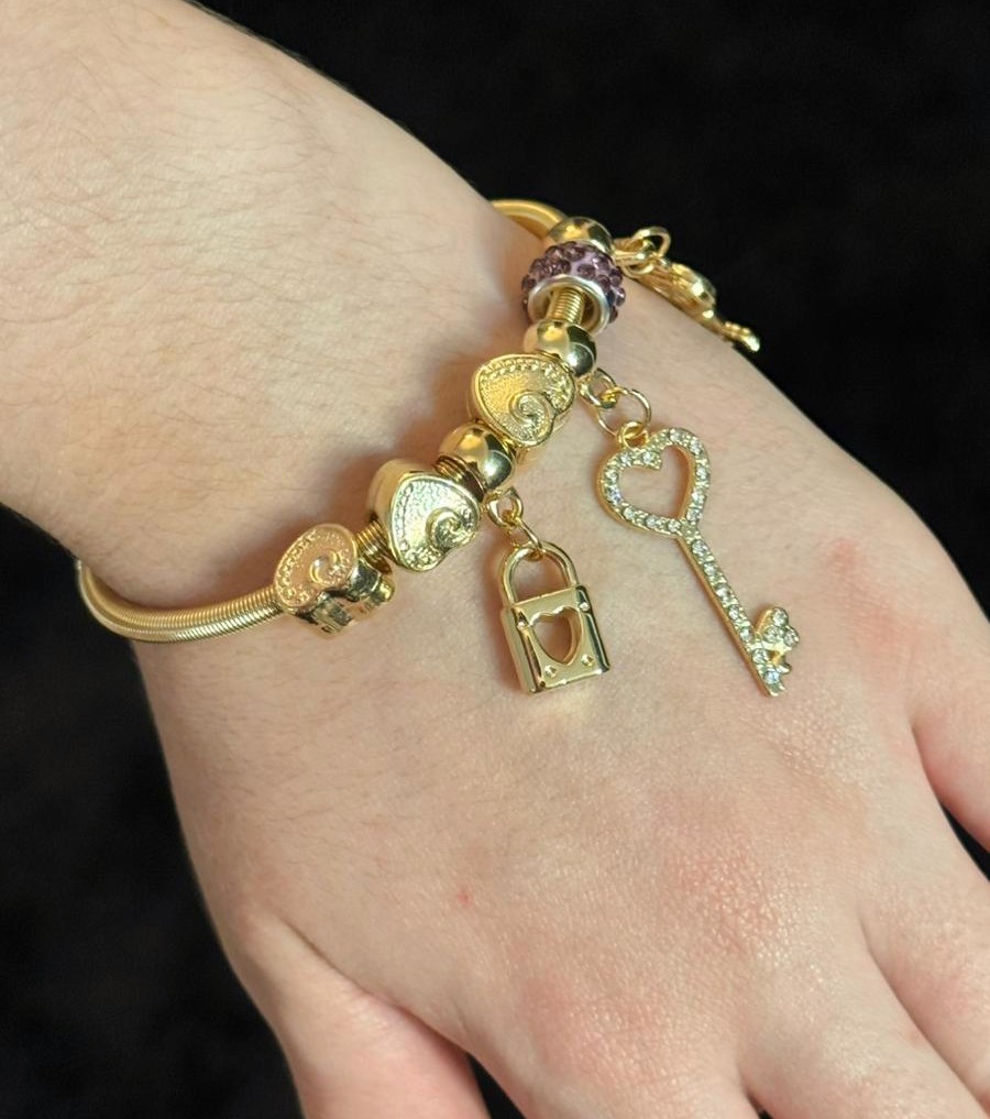 A Pulseira Chave do Amor é versátil: pode ser usada sozinha, destacando os detalhes dourados e o brilho dos pingentes, ou combinada com outras pulseiras para criar um estilo mais completo. O design moderno permite usá-la em situações casuais, trabalho, eventos e até como acessório afetivo para presentear alguém especial.